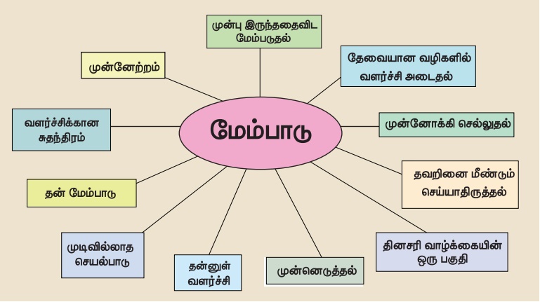 மேம்பாடு என்ற சொல் பல்வேறுமக்களால் பல்வேறு விதமாக உணரப்படுகிறது என்பதை கற்பனை செய்க.
