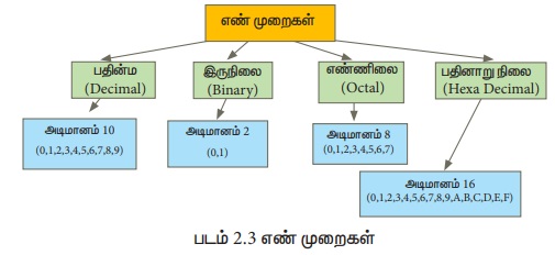 எண்முறைகளும் பயன்பாட்டில் உள்ளது. ஒவ்வொரு எண் முறையும் அதன் அடிமான மதிப்பை