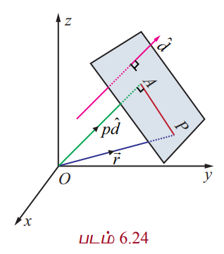 ஆதிப்புள்ளியிலிருந்து தளத்திற்கு உள்ள தூரம் p மற்றும் தளத்திற்குச் செங்குத்தான ஓரலகு வெக்டர்