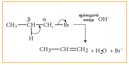 n-புரப்பைல் புரோமைடை ஆல்கஹால் கலந்த KOH உடன் வினைப்படுத்தும் போது புரப்பீன் உருவாகிறது. இவ்வினையில் H மற்றும் Br நீக்கப்படுகின்றது