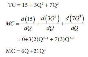 MC = d(15) / dQ + d(3Q2) / dQ + d(7Q3)/dQ