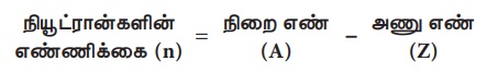நியூட்ரான்களின் எண்ணிக்கை (n) = நிறை எண் (A) - அணு எண் (Z)