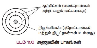 ஒரு அணுவில் இரண்டு கட்டமைப்புப் பாகங்கள் உள்ளன. அவை உட்கரு மற்றும் வெற்றிட இடைவெளிகளிலுள்ள கற்பனைப் பாதைகளான ஆர்பிட்டுகளாகும்.