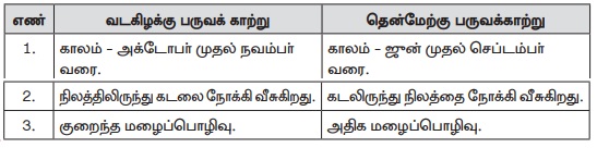 3. வடகிழக்கு பருவக்காற்று மற்றும் தென்மேற்கு பருவக்காற்று.