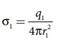கோளம் A ன் மின்னூட்டப் பரப்படர்த்தி σ1எனவும்