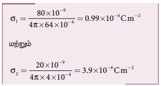 பரவலைப்பெறுவதால் நிலைமின் சமநிலையை அடைகின்றன. கோளம் A ன் பரப்பில் அமையும் மின்னூட்டம்