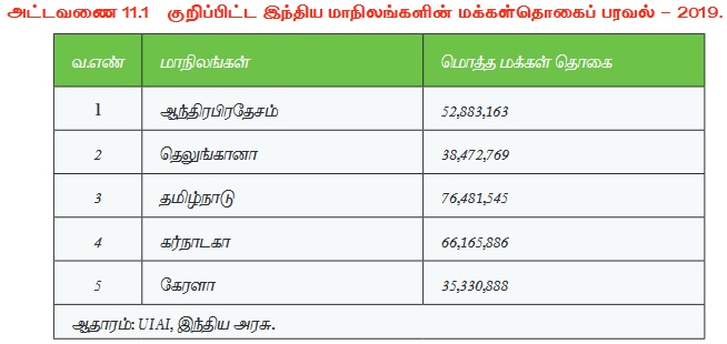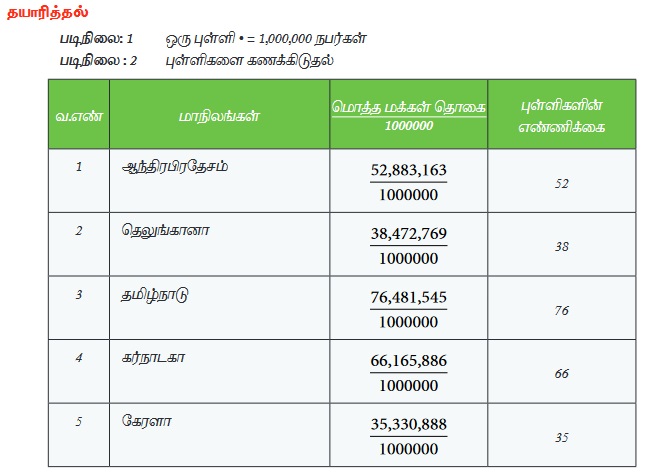 அட்டவணை 11.1 இல் கொடுக்கப்பட்டுள்ள மக்கள்தொகை தரவுகைளக் கொண்டு புள்ளியிடுதல் நிலவரைபடத்தை வரைக.