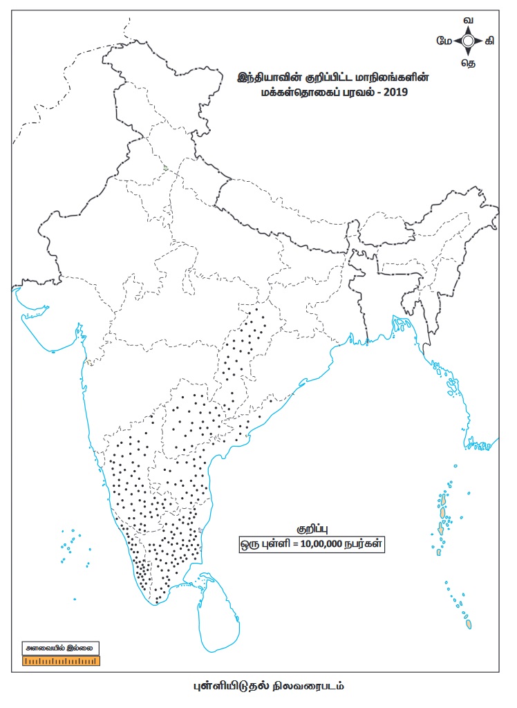 கருத்துசார் நிலவரைபடம் - புள்ளியிடுதல் முறை | 12th Geography : Chapter 11 : Thematic Mapping