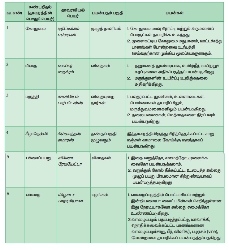 தாவரங்களின் பொருளாதார முக்கியத்துவம் - தாவரவியல் செய்முறைகள் - பொருளாதார முக்கியத்துவம் வாய்ந்த தாவரங்கள் மற்றும் அதன் பயன்கள் | 12th Botany : Practicals
