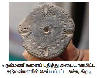 நூல் நூற்கும் கதிர் (Spindle whorl) பருத்தியிலிருந்து நூலை எடுப்பதற்கு நூல் நூற்கும் கதிர் பயன்படுகிறது.