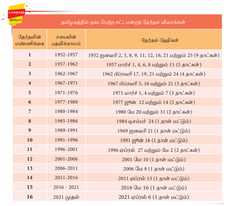 தமிழகத்தில் நடைபெற்ற சட்டமன்றத் தேர்தல் விவரங்கள்