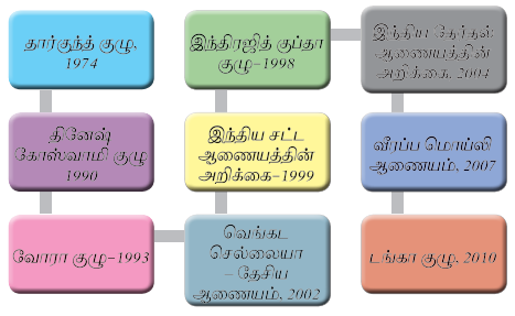 மேற்கண்ட குழுக்கள் மற்றும் ஆணையங்கள் அளித்த பரிந்துரையின் அடிப்படையில் நமது தேர்தல் முறைமையில் அவ்வப்போது பல்வேறு சீர்திருத்தங்கள் அறிமுகப்படுத்தப்பட்டுள்ளன.