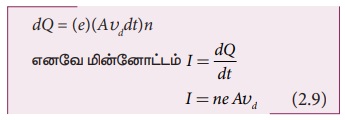 பாயும் மின்னோட்டம் என்பது I = Q/t ஆகும். எனினும் ஒரு கடத்தியில் மின் துகள்களின்