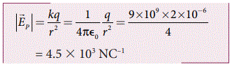 புள்ளி P யில் மின்புலத்தின் எண்மதிப்பு