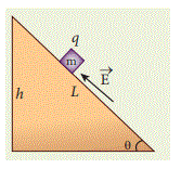மீது m நிறையும் q நேர் மின்னூட்ட மதிப்பும் கொண்ட பொருள் ஒன்று வைக்கப்பட்டுள்ளது.