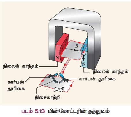 யிலும் மின்னோட்டம் எதிரெதிர் திசைகளில் செல்வதால், பிளெமிங்கின் இடது கை விதியின் படி அவற்றின் இயக்கத்திசைகளும் எதிரெதிராக இருக்கும். கம்பிச் சுருளின் இருமுனைகளிலும் விசையானது எதிரெதிர் திசைகளில் இருப்பதால் அவை சுழல்கின்றன.