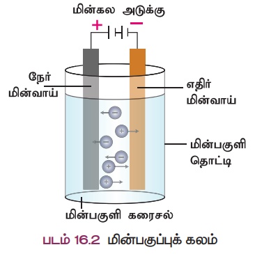 ஒரு மின்பகுப்புக் கலத்தில், மின்சாரமானது, மின்பகுளிக்குள் அனுப்பப்படும்போது,