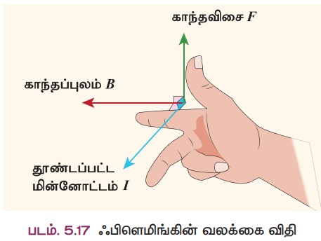 காந்தவியல் மற்றும் மின்காந்தவியல் திசையை ஃபிளெமிங் வலது கை விதி மூலம் விளக்கலாம்.
