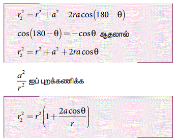 +q விலிருந்து புள்ளி P ன் தொலைவு r1 எனவும் -q விலிருந்து புள்ளி p ன் தொலைவு , r2 எனவும் கொள்க.
