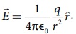 r^ என்பது r^ q1, மற்றும் q2 ஐ இணைக்கும்கோட்டின் திசையில் செயல்படும் ஓரலகு