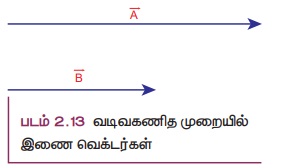 என்ற இரண்டு வெக்டர்கள், ஒரே திசையிலும் இணைகோடுகள் வழியாகவும் செயல்பட்டால் அவற்றை இணை வெக்டர்கள் என்று அழைக்கலாம். இணைகோடுகள் வழியே செயல்படுவதால் அவற்றுக்கு இடையே உள்ள கோணம் 0° ஆகும். (படம் 2.13)