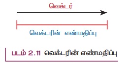 மற்றும் திசை இவை இரண்டினாலும் குறிப்பிடக்கூடிய அளவுகள் வெக்டர் எனப்படும். வடிவகணித முறையில் வெக்டர் என்பது ஒரு குறிப்பிட்ட திசையைக் காட்டும் கோட்டுத்துண்டு ஆகும். இது படம் 2.10 யில் காட்டப்பட்டுள்ளது. இயற்பியலில் சில அளவுகள் வெக்டரால் மட்டுமே குறிப்பிட இயலும்.
