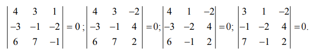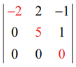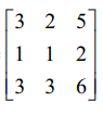 = 3 (6 − 6) − 2 (6 − 6) + 5 (3 − 3) = 0 . எனவே, ρ(A) < 3.