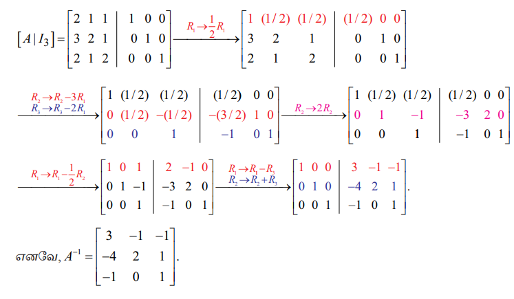 கேள்விகளுக்கான பதில்கள், தீர்வுகள் - ஓர் அணியின் மீதான தொடக்கநிலை உருமாற்றங்கள் (Elementary transformations of a Matrix): எடுத்துக்காட்டு மற்றும் தீர்வு | 12th Maths : UNIT 1 : Applications of Matrices and Determinants