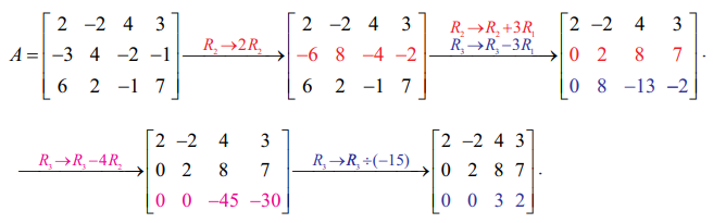 கடைசி சமான அணி ஏறுபடி வடிவத்தில் உள்ளது மற்றும் இரண்டு அபூச்சிய நிரைகளைப் பெற்றுள்ளது. எனவே ρ(A) = 2.