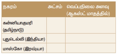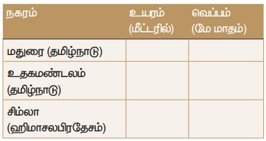 கொடுக்கப்பட்ட இடங்களை அட்சம் மற்றும் வெப்பநிலை ஆகிய இருகூறுகளை அடிப்படையாகக் கொண்டு இணைக்கவும்