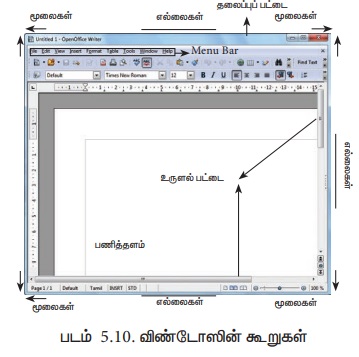படம் 5.10 சன்னல் திரையின் கூறுகளைப் புரிந்து கொள்ள பயன்படுகிறது.