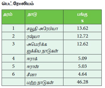 24 வது இடத்தில் உள்ளது. பெட்ரோலிய எண்ணெய் பரவல் இயற்கையாகவே சமநிலையற்றதாக காணப்படுகிறது.