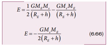 புவிப்பரப்பிலிருந்து h உயரத்தில் புவியினைச் வலம் வரும் துணைக்கோளின் மொத்த ஆற்றல் கீழ்க்கண்ட முறையில் கணக்கிடப்படுகிறது. துணைக்கோளின் மொத்த ஆற்றல் அதன் இயக்க ஆற்றல் மற்றும் நிலை ஆற்றலின் கூட்டுத்தொகையாகும். துணைக்கோளின் நிலை ஆற்றல்