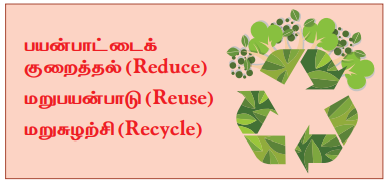 iii) மறுசுழற்சி (Recycle) ஆகியவைகளாகும். இயற்கைச் செல்வங்களை சிக்கனமாக மறுசுழற்சி அடிப்படையில் பயன்படுத்த வேண்டும்.
