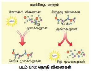 போது சர்க்கரைகளின் சிதைவு போன்றவை சிதைவுச் செயல்களுக்கான எடுத்துக்காட்டுகளாகும்
