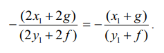 எனவே தொடுகோட்டின் சமன்பாடு y − y1 = –[(x1 + g)/(y1 + f)] (x – x1) −இலிருந்து,