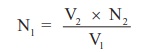 பருமனறி பகுப்பாய்வு தத்துவத்தின்படி, V1 × N1 = V2 × N2