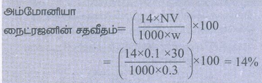அம்மோனியா நைட்ரஜனின் சதவீதம் = (14 × NV/1000 × w) × 100