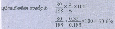 1) 0.185g எடையுள்ள கரிமச்சேர்மம், அடர் HNO3 மற்றும் சில்வர் நைட்ரேட்டுன் சேர்ந்து 0.320g வெள்ளி புரோமைடை தந்தது எனில், அதில் உள்ள புரோமினின் % காண்க (Ag = 108, Br = 80)