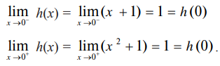 எனவே x = 0−ல் h ஒரு தொடர்ச்சியான சார்பாகும். மேலும் (− ∞, 0) மற்றும் (0, ∞)−ல் h ஒரு தொடர்ச்சியான சார்பு. எனவே, (– ∞, ∞)−ல் h(x) ஒரு தொடர்ச்சியானது.