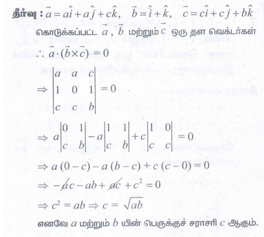 என்ற வெக்டர்கள் ஒரு தள வெக்டர்கள் எனில், a மற்றும் b ஆகியவற்றின் பெருக்குச் சராசரி c ஆகும் என நிரூபிக்க.