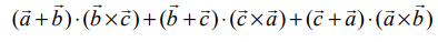 என்ற ஒரு தளம் அமையா மூன்று வெக்டர்களை ஒரு புள்ளியில் சந்திக்கும் விளிம்புகளாகக் கொண்ட இணைகரத்திண்மத்தின் கன அளவு 4 கன அலகுகள் எனில்