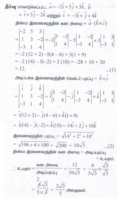 கேள்விகளுக்கான பதில்கள், தீர்வுகள் - பயிற்சி 6.2: திசையிலி முப்பெருக்கல் (Scalar triple product) | 12th Maths : UNIT 6 : Applications of Vector Algebra