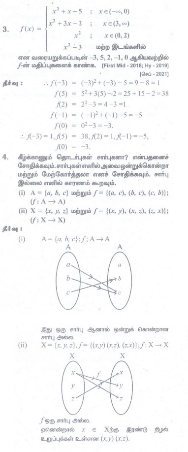 கணக்கு கேள்வி பதில்கள், தீர்வு | கணிதம் - பயிற்சி 1.3 : சார்புகள் | 11th Mathematics : UNIT 1 : Sets, Relations and Functions