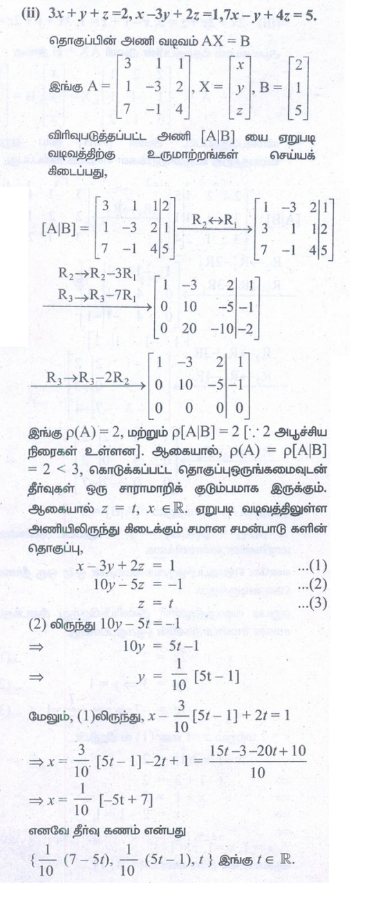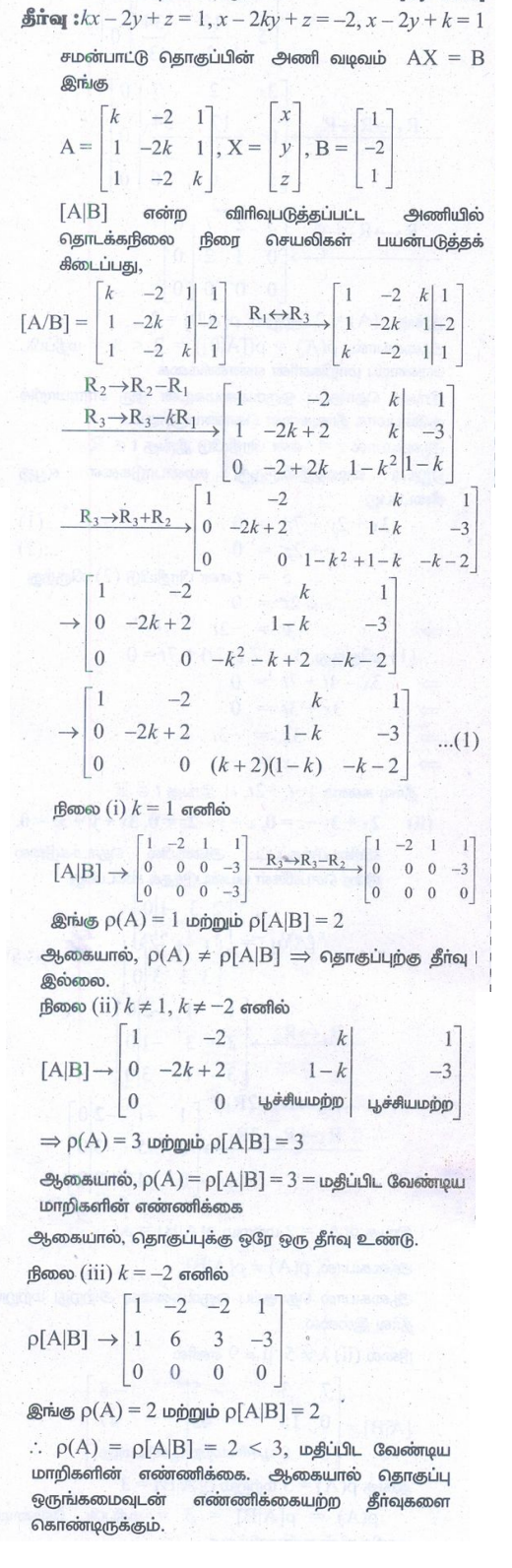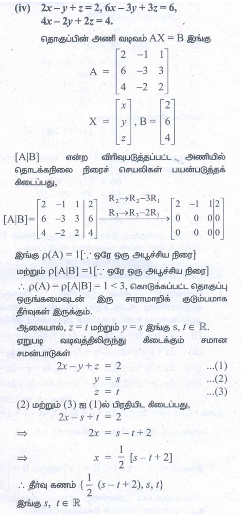 12 ஆம் வகுப்பு கணிதம் : அத்தியாயம் 1 : அணிகள் மற்றும் அணிக்கோவைகளின் பயன்பாடுகள் : பயிற்சி 1.6: அசமப்படித்தான நேரியச் சமன்பாடுகள் (Non – homogeneous Linear Equation) : பல்வேறு வினாக்களுக்கான பதில்கள் மற்றும் தீர்வுகள்