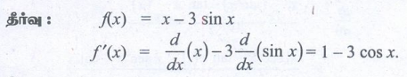 11th Mathematics : UNIT 10 : Differential Calculus: Differentiability and Methods of Differentiation : Exercise 10.2: Derivatives of basic elementary functions - Differentiation Rules Problem Questions with Answer, Solution | Differential Calculus | Mathematics in Tamil : 11th Standard