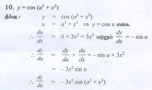 11th Mathematics : UNIT 10 : Differential Calculus: Differentiability and Methods of Differentiation : Exercise 10.3: Examples on Chain Rule (Differentiation Rules) Problem Questions with Answer, Solution | Differential Calculus | Mathematics in Tamil : 11th Standard