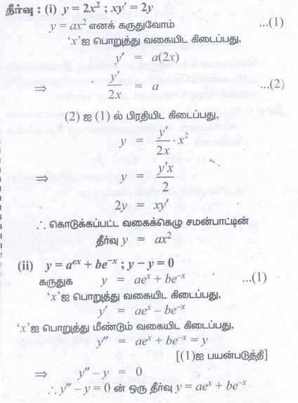 1. பின்வரும் சமன்பாடுகள் ஒவ்வொன்றும் அவற்றிற்கெதிரே கொடுக்கப்பட்டுள்ள வகைக்கெழுச் சமன்பாட்டின் தீர்வாகும் எனக்காட்டுக.