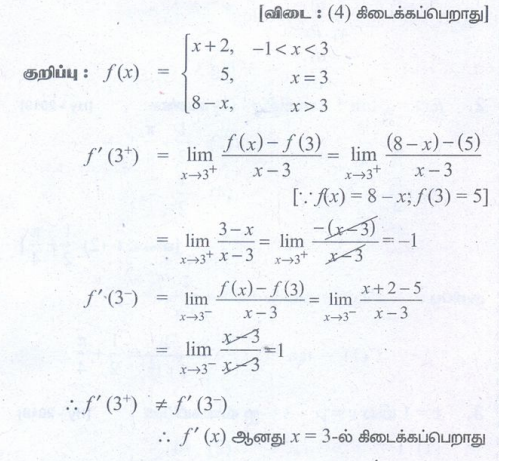 வகை நுண்கணிதம் வகைமை மற்றும் வகையிடல் முறைகள் DIFFERENTIABILITY AND METHODS OF DIFFERENTIATION | - பயிற்சி 10.5: சரியான விடையினை தேர்ந்தெடுக்கவும் | 11th Mathematics : UNIT 10 : Differential Calculus: Differentiability and Methods of Differentiation