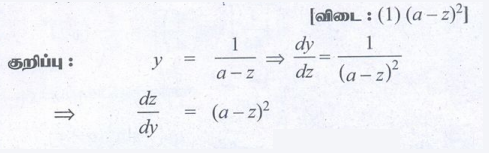 (5) y = 1 / (a - z) எனில், dz / dy -ன் மதிப்பு